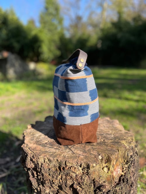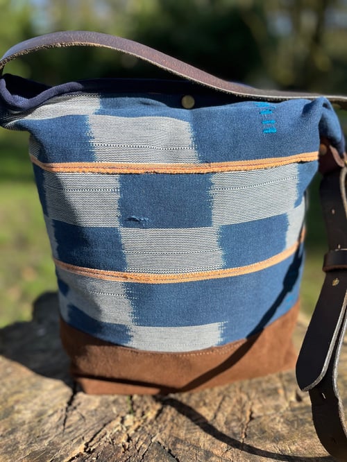 Bucket Bag aus weichem vintage Mudcloth und upcycled Wildleder.